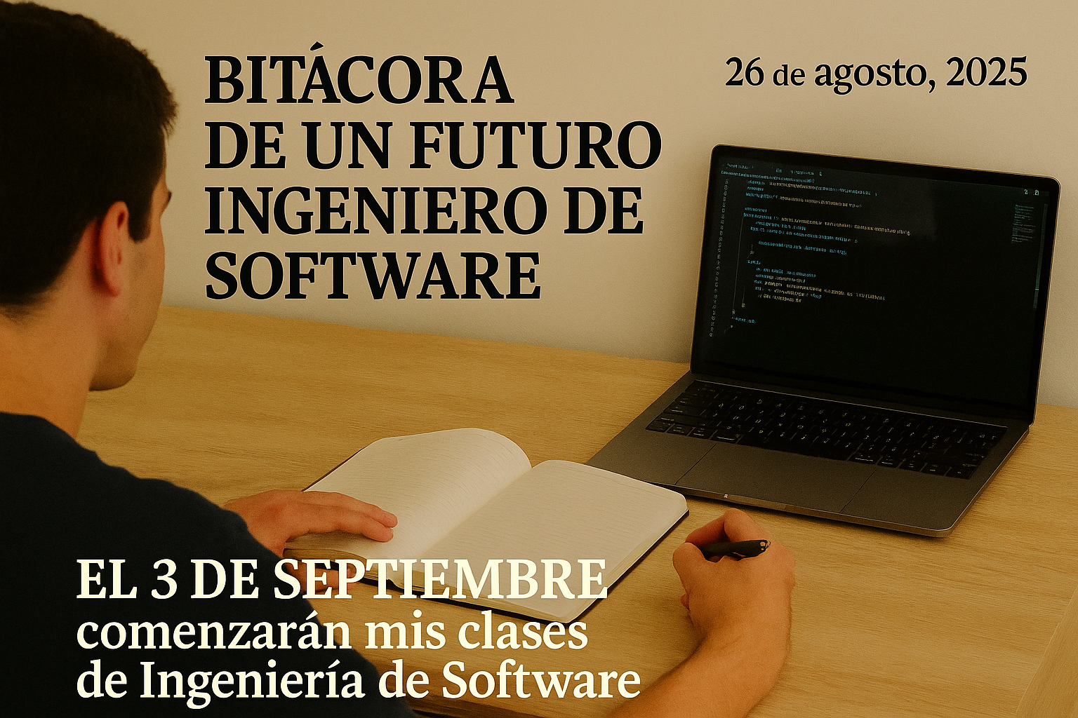 Hoy faltan exactamente siete días para iniciar mis clases en la carrera de Ingeniería de Software. El próximo 3 de septiembre marcará un antes y un después en mi vida, y no puedo evitar sentir una mezcla de ansiedad, emoción y expectativa.